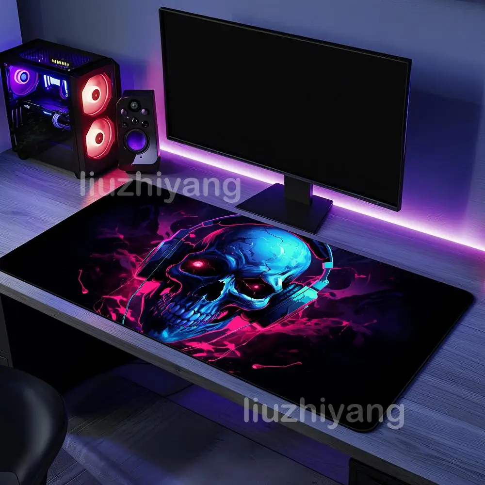 Коврик для мыши в стиле хип-хоп с черепом, большой коврик для компьютерной офисной игры, настольный коврик 90x40 XXL, резиновые нескользящие коврики для клавиатуры с прошитыми краями, длинные настольные коврики