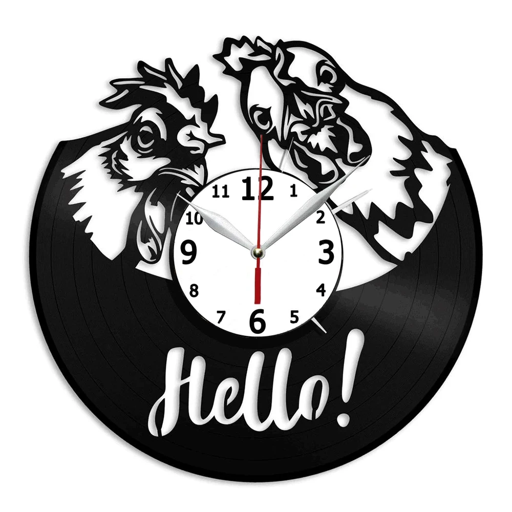 Виниловые настенные часы цыплята Hello, оригинальные современные настенные часы, креативные часы