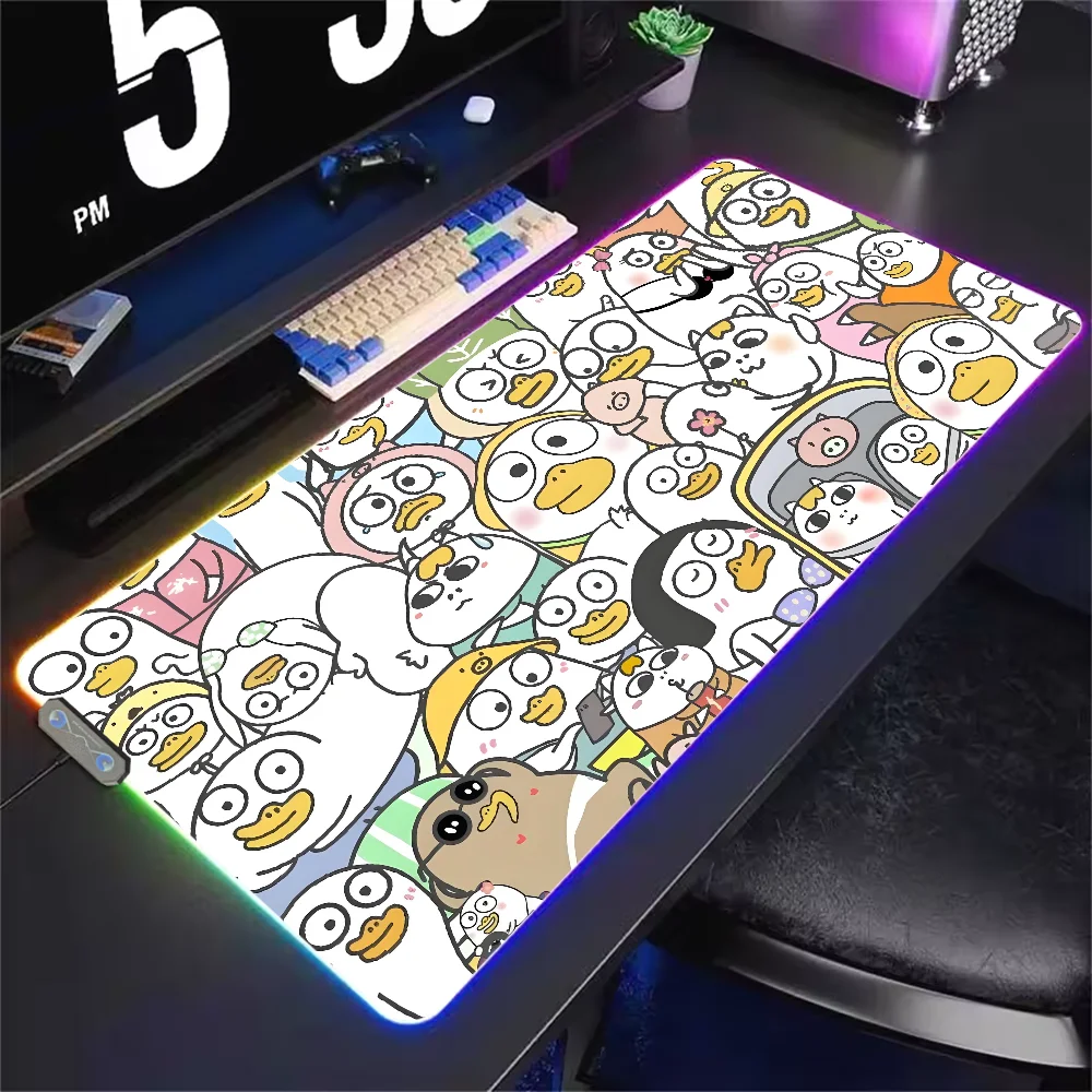 Коврик для мыши с рисунком Duckyo Friend, RGB светодиодный светильник, нескользящая резиновая основа, водонепроницаемый офисный коврик для ПК, настольный коврик, USB, большая игра, дом, лучшая цена
