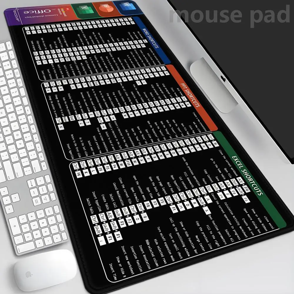 Коврик для мыши с французскими ярлыками для офиса, большой расширенный большой коврик для мыши с клавиатурой для Excel Word Powerpoint, игровой настольный коврик с прошитыми краями