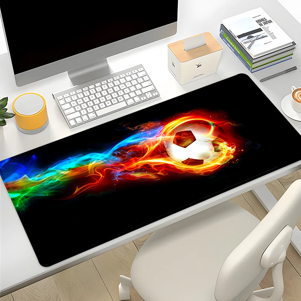 Коврик для мыши Fire Football Art Design, большие настольные аксессуары, настольный коврик, резиновая основа с прошитыми краями, коврик для мыши, нескользящий настольный коврик