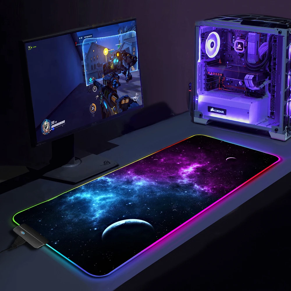 Коврик для мыши RGB, Светодиодный настольный коврик для дома и офиса, коврик для мыши Galaxy, большой милый Настольный коврик, очень большой Наст...