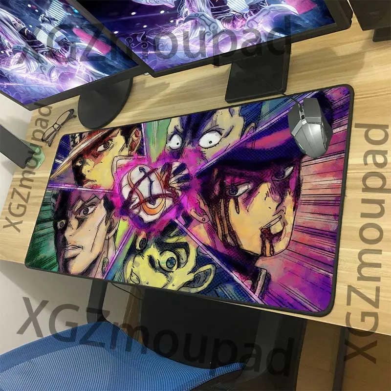 Коврик для мыши XGZ, большой резиновый нескользящий коврик для компьютерного стола с черными застежками и классическим аниме «невероятные п...