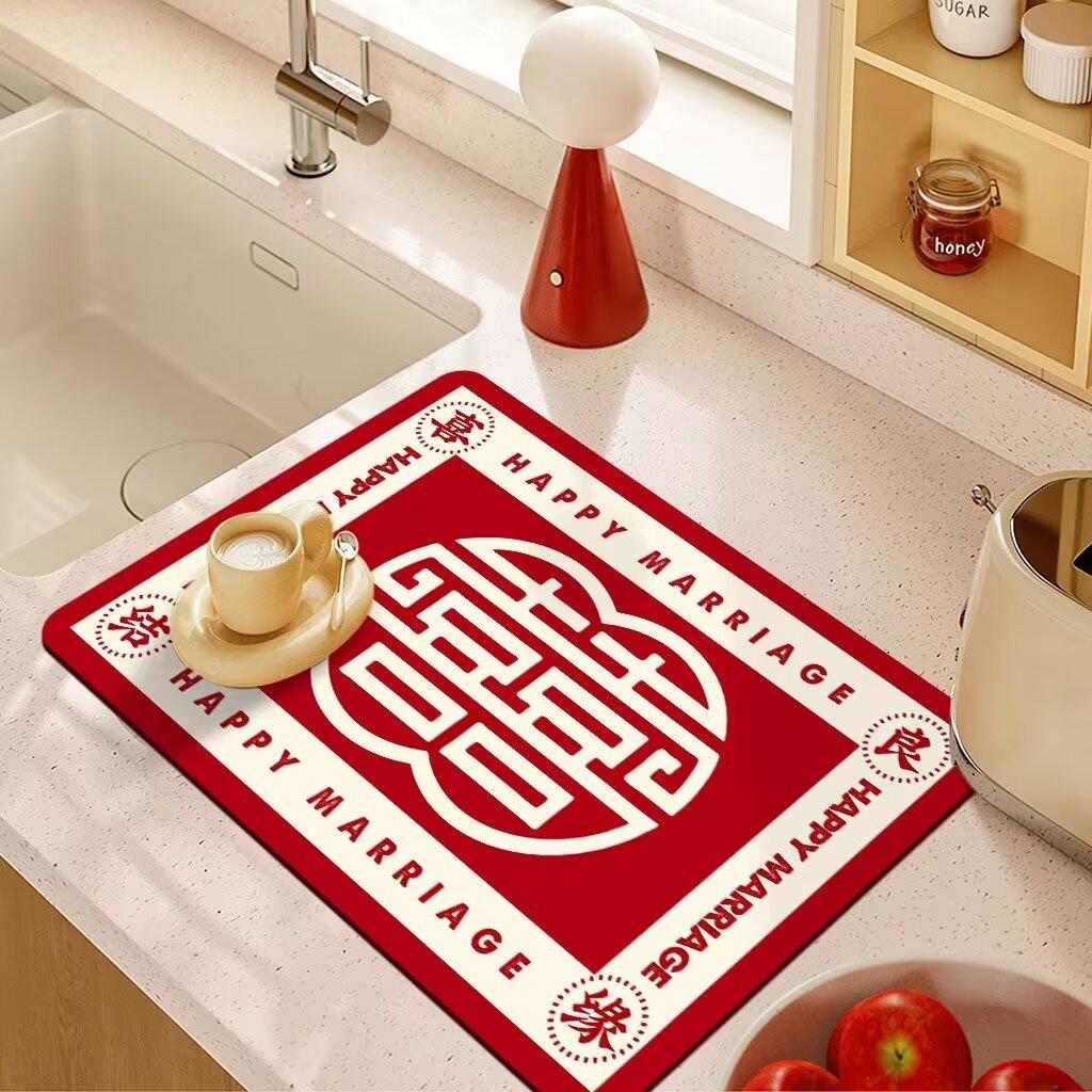 Коврик для слива свадебный красный праздничный впитывающий грязный коврик для мытья стола Технология бархатный впитывающий коврик под миску 40*50cm【TPR2.5MM】