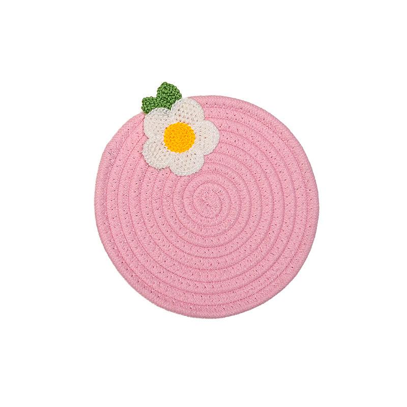Коврик для чашки с водой ручной работы с весенним милым цветком, коврик для еды, коврик для чаши из хлопчатобумажной нити, простой корейский изоляционный коврик для стола розовый