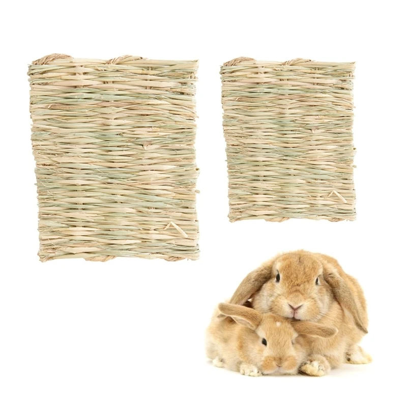 Коврик из кроличьей травы, тканая кровать, жевательное постельное белье для мелких животных, натуральная соломенная подушечка