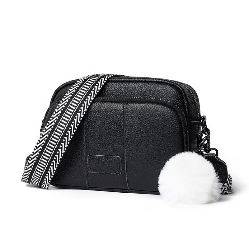 Кожаная женская сумка, модная и простая сумка через плечо, небольшой квадратный мешок из коровьей кожи первого слоя чёрный