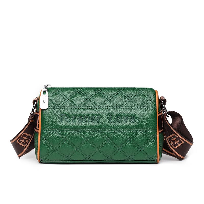 Кожаная женская сумка осенняя ромбовидная вышитая нитью ретро сумка через плечо зелёный