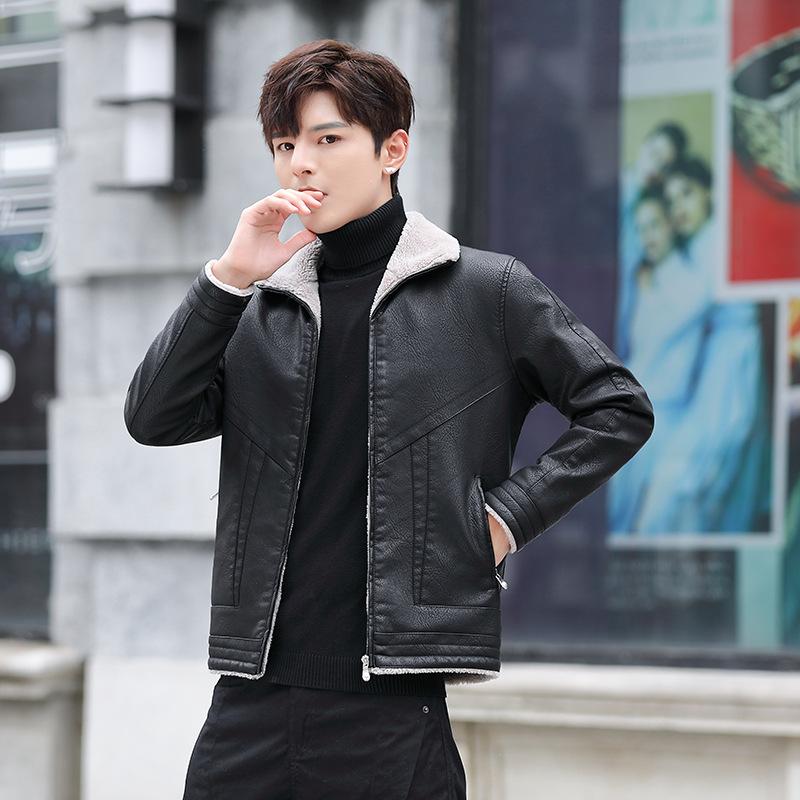 Кожаная куртка Зимняя корейская модная куртка с воротником из искусственного меха, утолщенная и теплая кожаная куртка, универсальная кожаная куртка плюс бархатная куртка 6XL