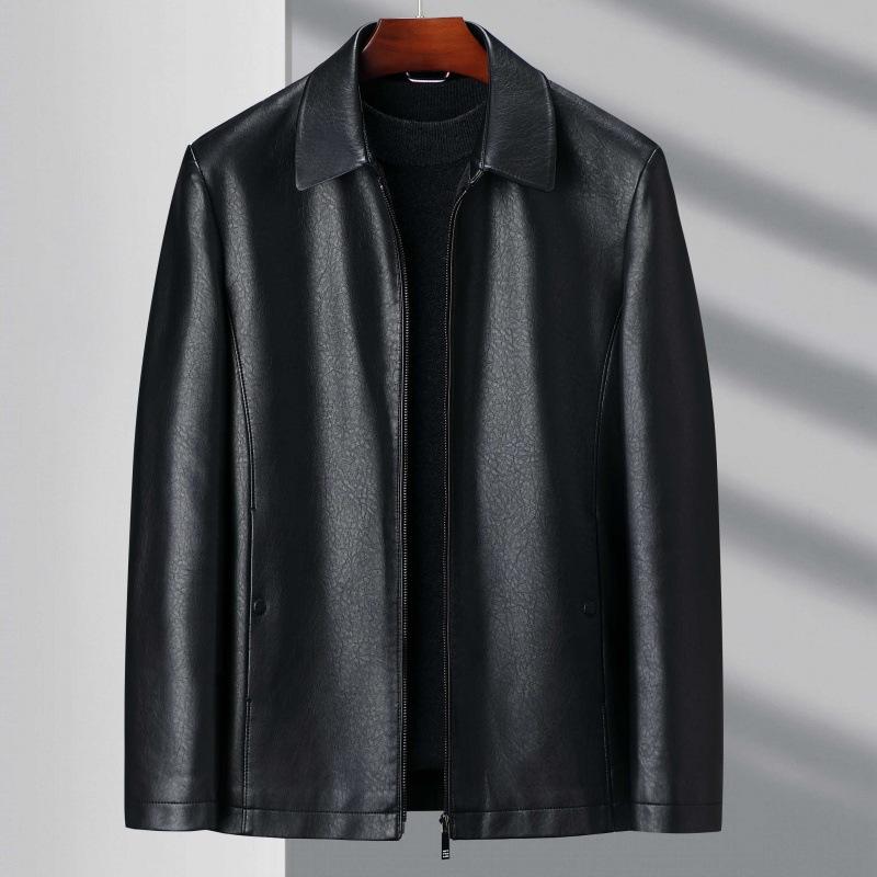 Кожаная куртка мужская бархатная утолщенная кожаная куртка для пап среднего и пожилого возраста осенне-зимняя повседневная куртка из натуральной кожи 170