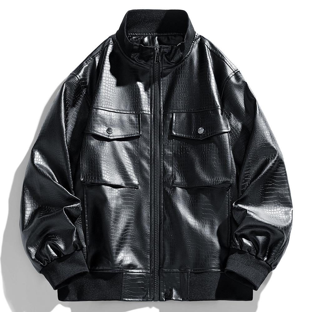 Кожаная куртка мужская большого размера весенне-осенняя свободная ретро для полных подростков рабочая куртка 3XL чёрный