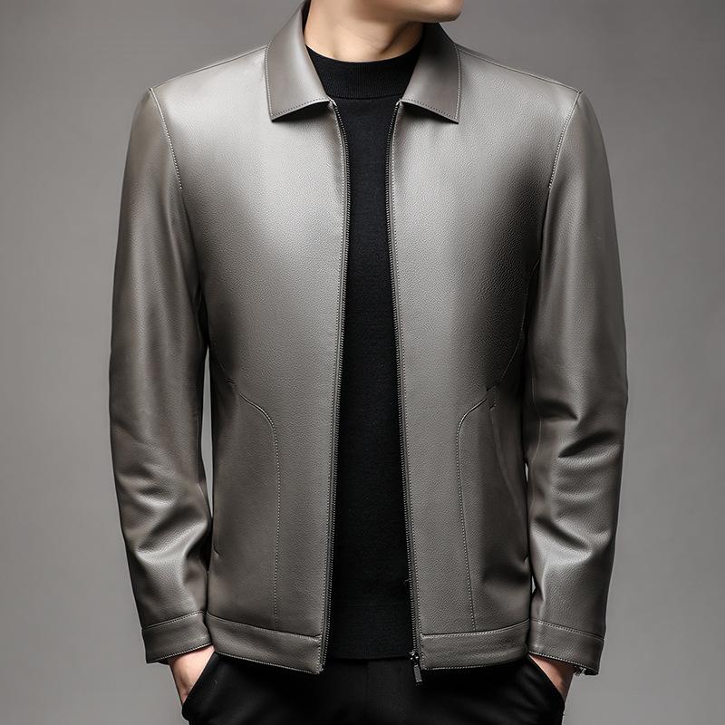 Кожаная куртка мужская осенне-зимняя новая мужская мягкая кожаная куртка с лацканами для мужчин среднего возраста свободная деловая повседневная кожаная куртка 195