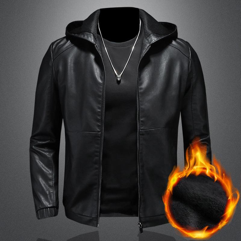 Кожаная куртка мужская осенне-зимняя новая повседневная куртка с капюшоном красивая мотоциклетная куртка мужская куртка L
