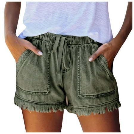 JDEFEG Twill Shorts Women Hole Waist Pants Summer High Women Pants Shorts Jeans Slim Pants Womens Pajamas Set Shorts Silk Shorts Skirts for Women Green M