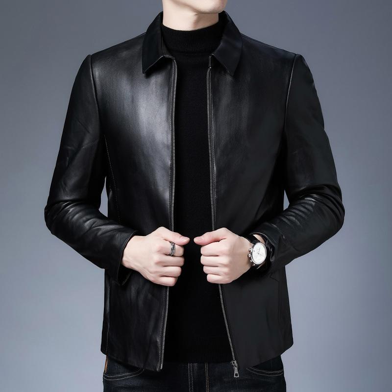 Кожаная куртка осень новая черная с лацканами куртка из овчины мужское кожаное пальто 4XL