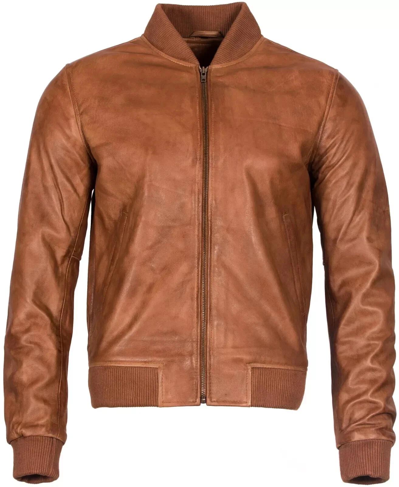 Кожаная куртка ручной работы Бомбер на молнии Стильная мужская мода Натуральная овчина Последняя байкерская 3XL коричневый