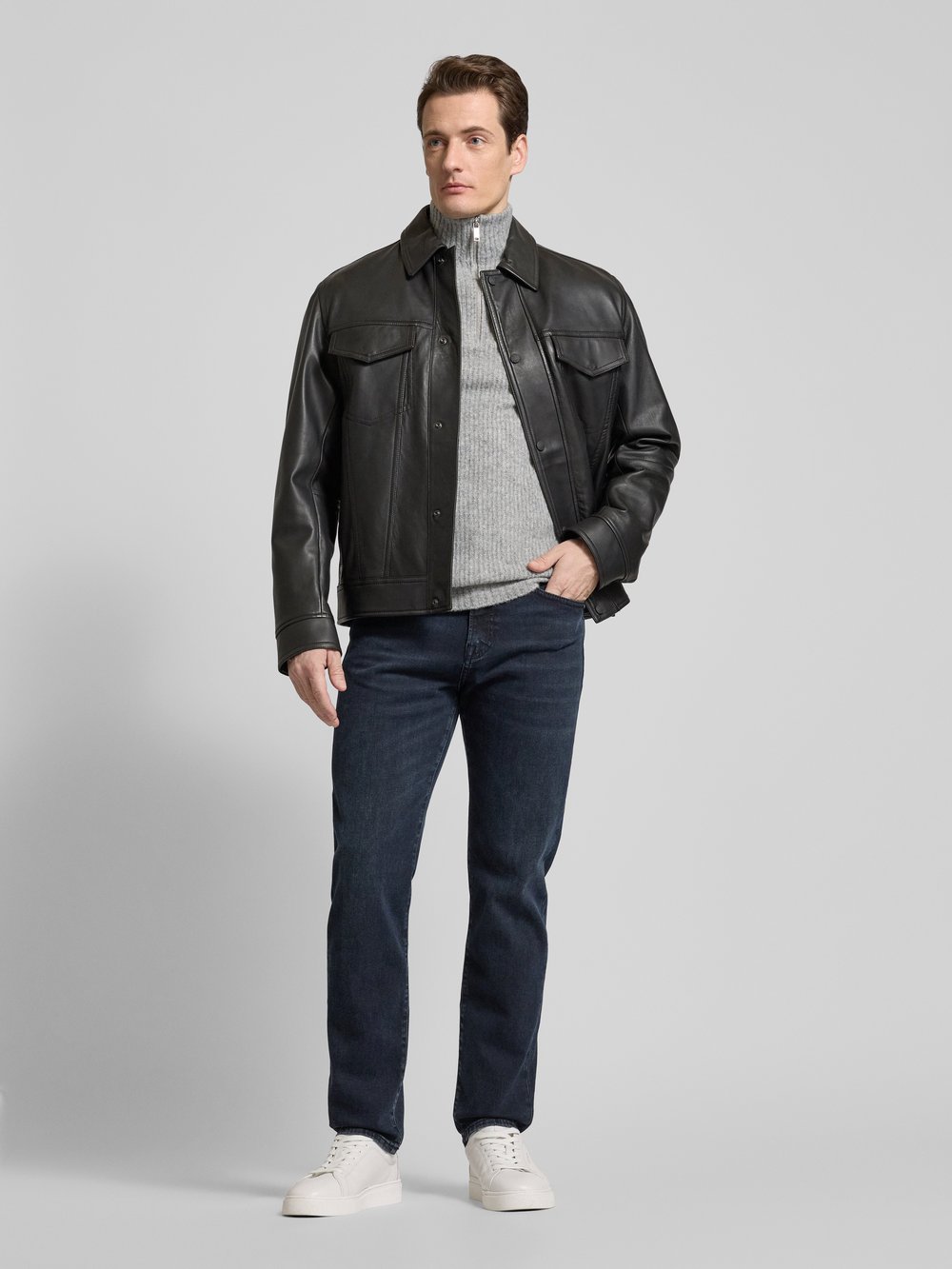 Мужская кожаная куртка BOSS Orange Настоящая овечья наппа Прямой крой Модель «Джокрус» отложной воротник Непрерывная планка с застежкой-кнопкой Нагрудные карманы с клапанами