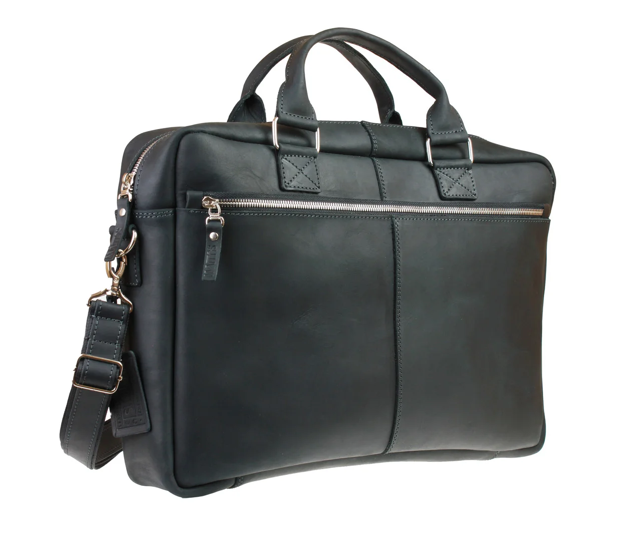 Кожаная мужская сумка для ноутбука и документов А4 большая горизонтальная через плечо с ручками SULLIVAN черная с качественной металлической фурнитурой
