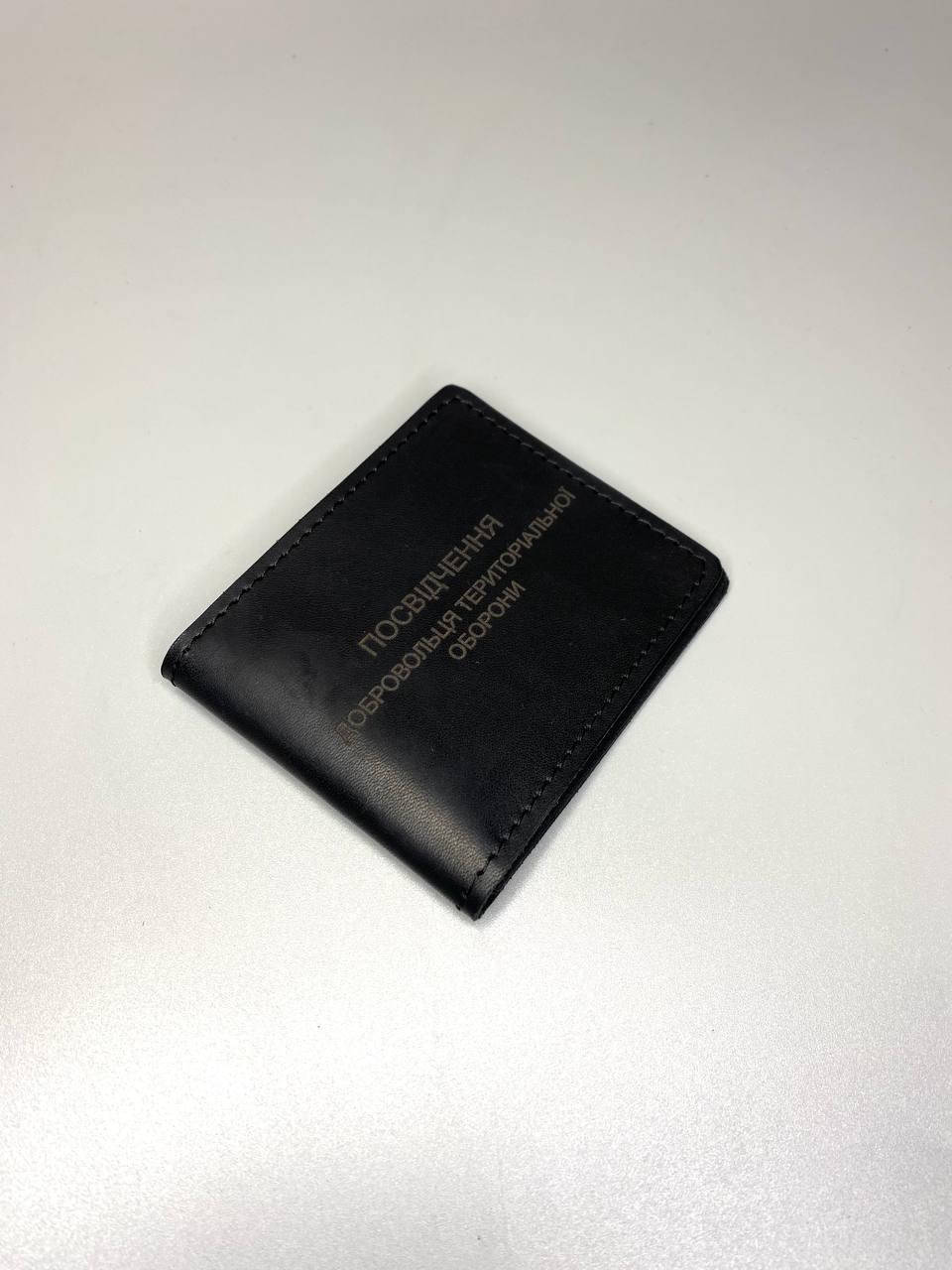 Кожаная обложка для удостоверения ПОСВІДЧЕННЯ ДОБРОВОЛЬЦЯ ТЕРИТОРІАЛЬНОЇ ОБОРОНИ черная, Черный