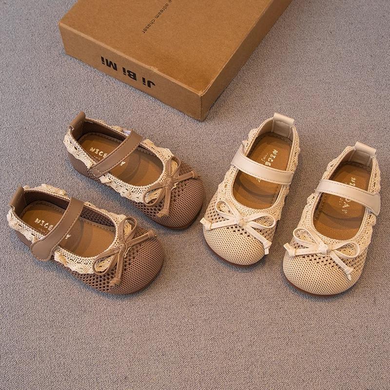 Кожаная обувь для девочек, весенне-осенние стили, детская обувь, туфли принцессы для маленьких девочек, туфли-бобы, одиночные туфли, дышащая сетчатая поверхность.