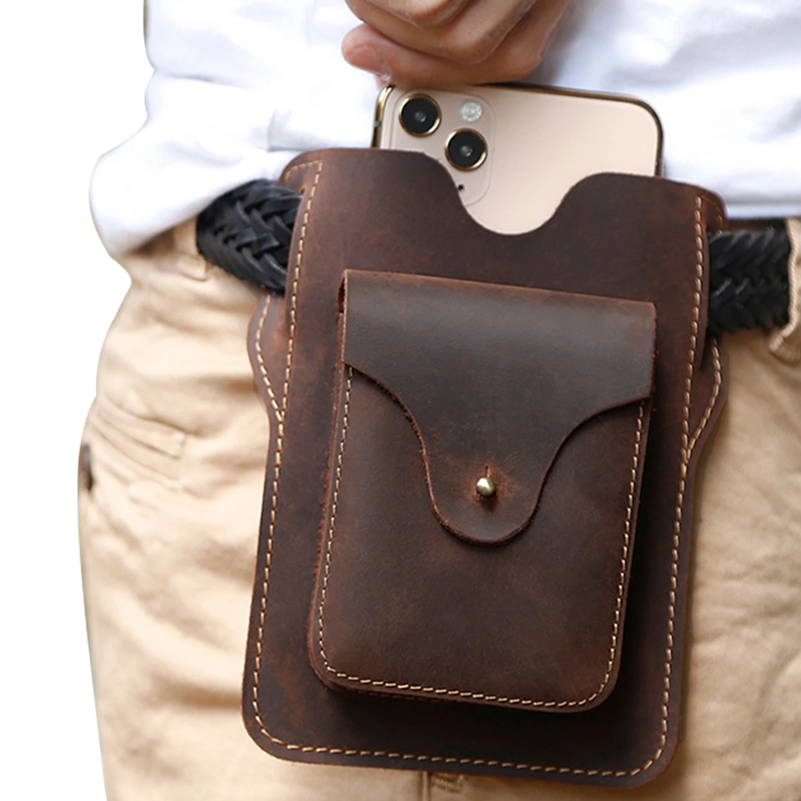Кожаная поясная сумка для мужчин, вместительная коричневая сумочка на ремне, сумки через плечо, кошелек с ремешком на застежке