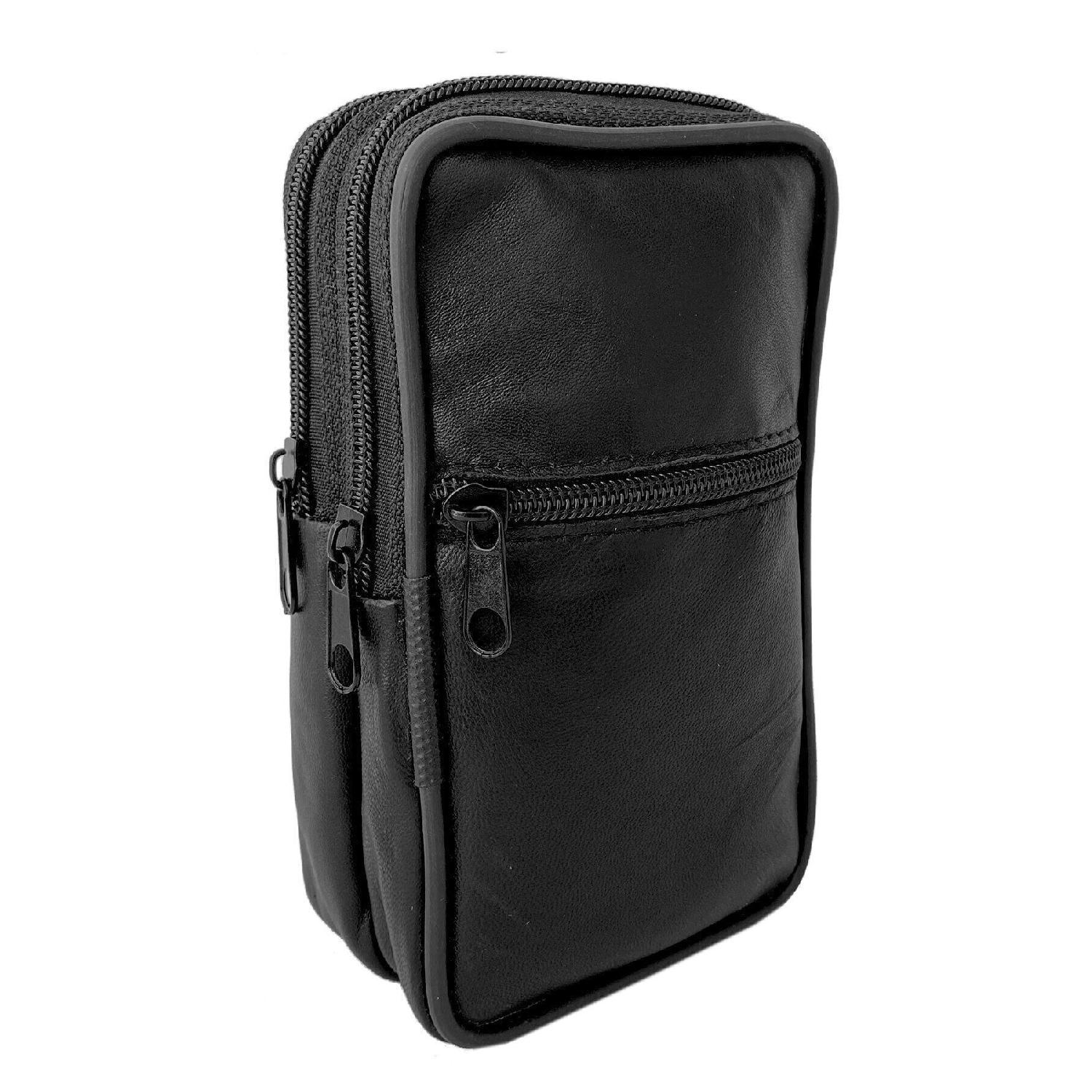 Кожаная поясная сумка с отделением для телефона, вертикальная, с 3 отделениями чёрный