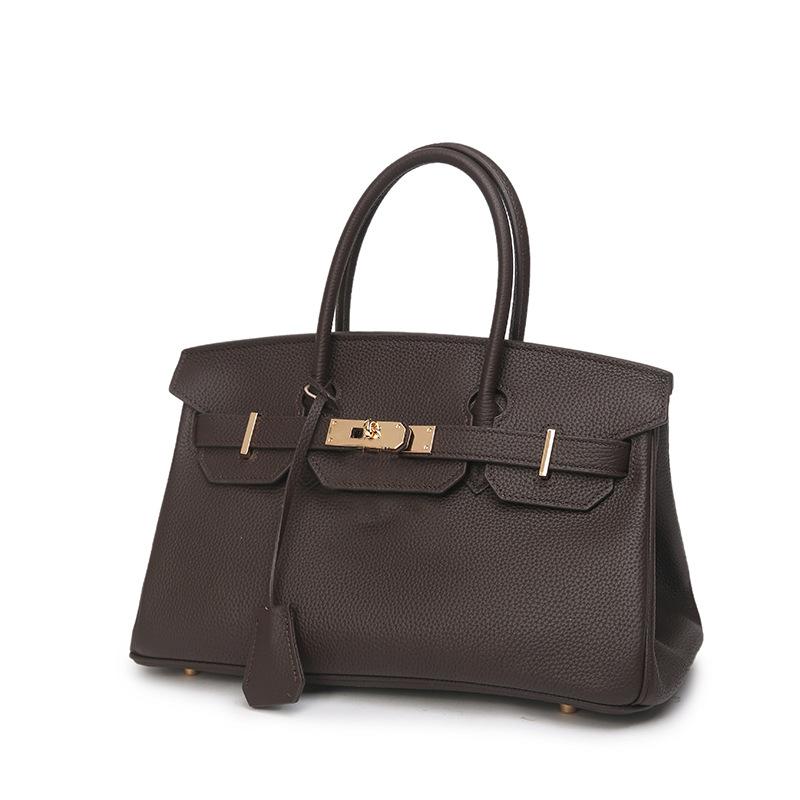 Кожаная ручка Шоколад Того Верхний слой коровьей кожи Горизонтальная металлическая сумка Натуральная кожа Женская сумка Замок-пряжка Высококлассное ощущение Удобная сумочка 30x12x16cm
