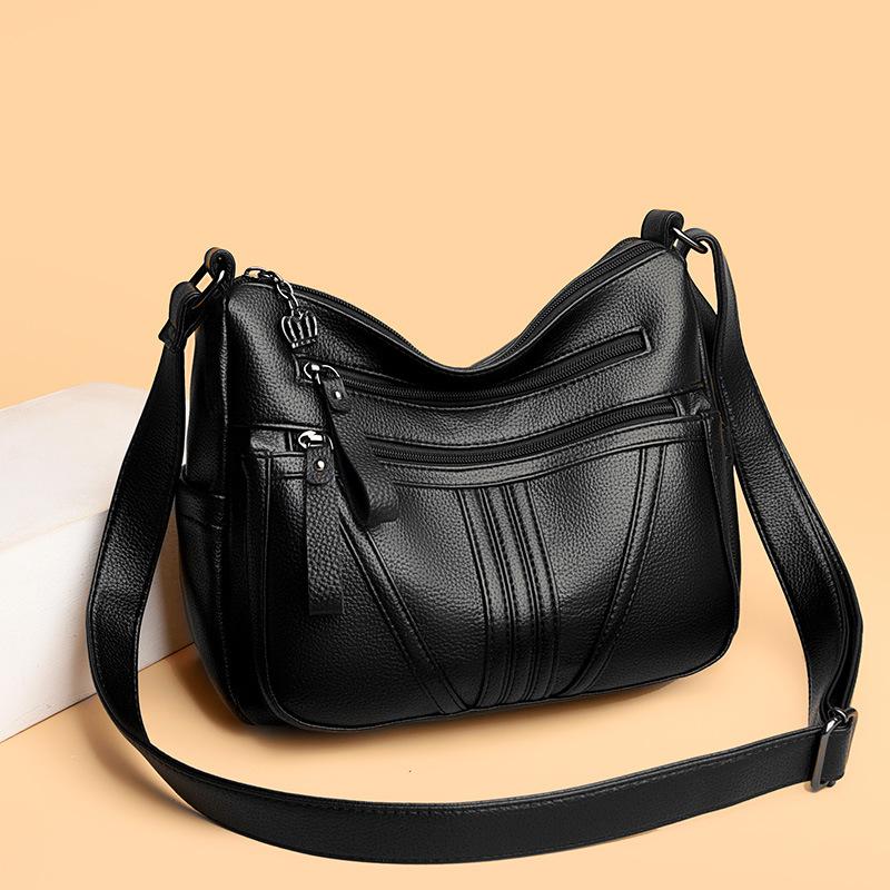 Кожаная сумка Женская сумка среднего возраста Сумка через плечо для матери чёрный