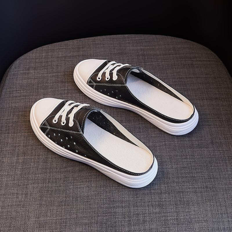 Кожаная сумка голова полушлепанцы женские носят лето новые интернет-знаменитость ленивый один педаль мягкая подошва половина тапочки белые туфли 40