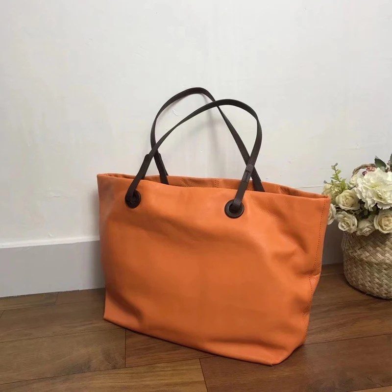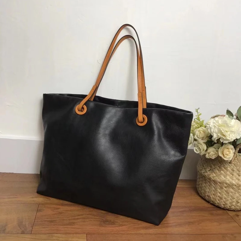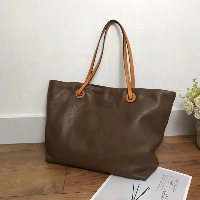 Кожаная сумка для покупок, мягкая Вместительная женская сумка-тоут из первого слоя воловьей кожи, нишевая оригинальная новая модель с молни...