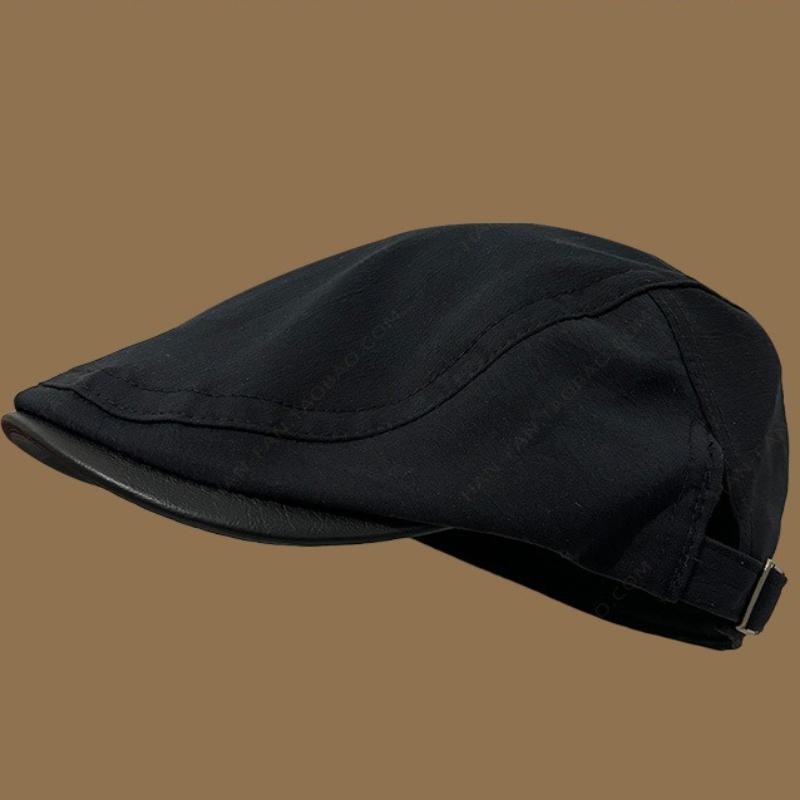Кожаная шляпа с полями в стиле ретро, женская весенняя новая универсальная шляпа художника, корейская модная шляпа газетчика с утиным язычком M 56-60cm чёрный