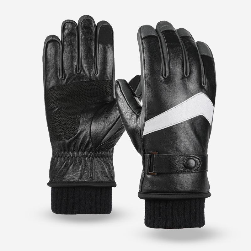 Кожаные Лыжные Кожаные Перчатки Утепленные Мужские Перчатки для Мотоциклетной Езды Теплые Сенсорные Зимние Уличные Ветрозащитные Флисовые XXL чёрный