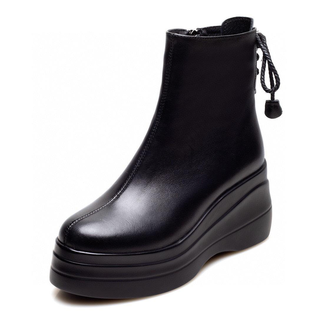 Кожаные ботинки женские осенне-зимние новые на толстой подошве-маффине и водонепроницаемые с боковой молнией короткие ботинки черные женские ботинки 39