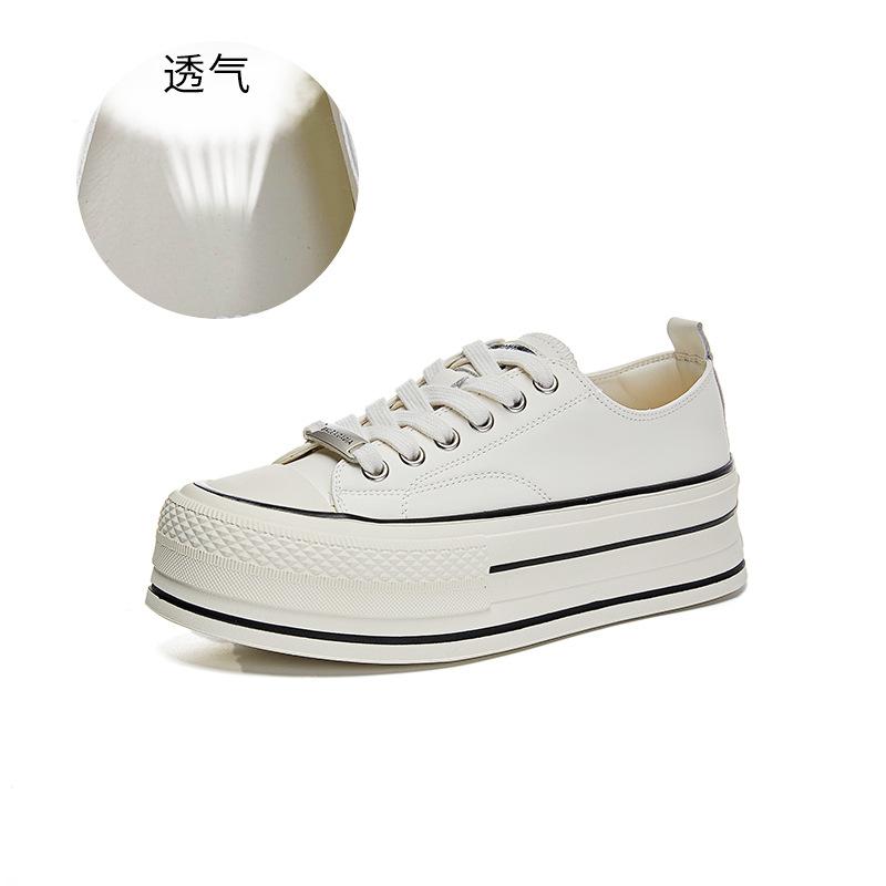 Кожаные маленькие белые туфли женские туфли 2025 осень новые на толстой подошве увеличивающие рост повседневные модные одинарные туфли удобные универсальные кеды женские 40 белый