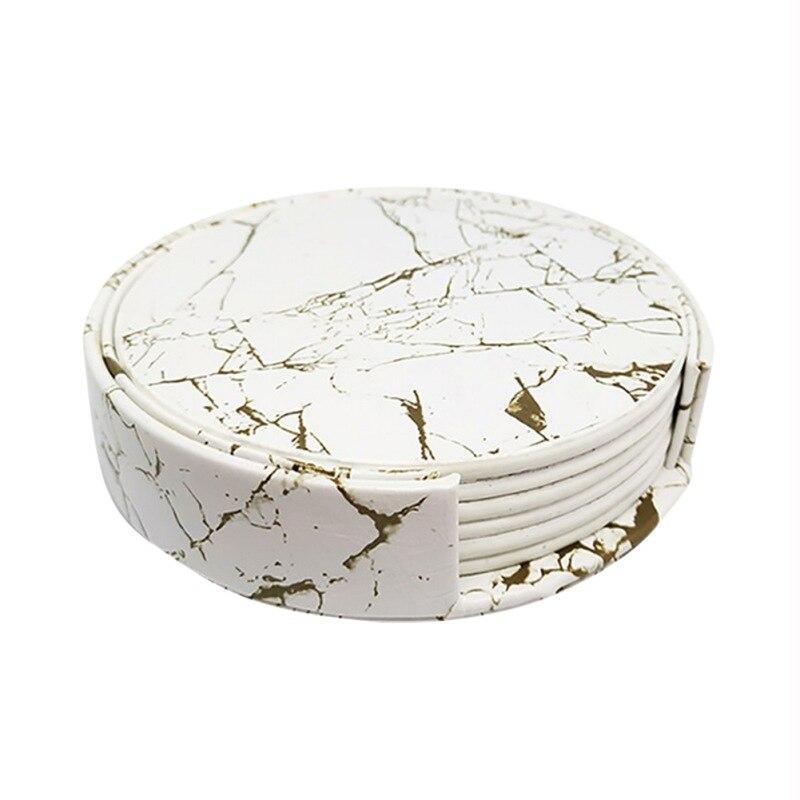 Кожаные подставки с держателем, набор из 6 штук, имитирующие мраморные подставки для напитков, забавный подарок на новоселье, коврик для круглой чашки для дома и кухни