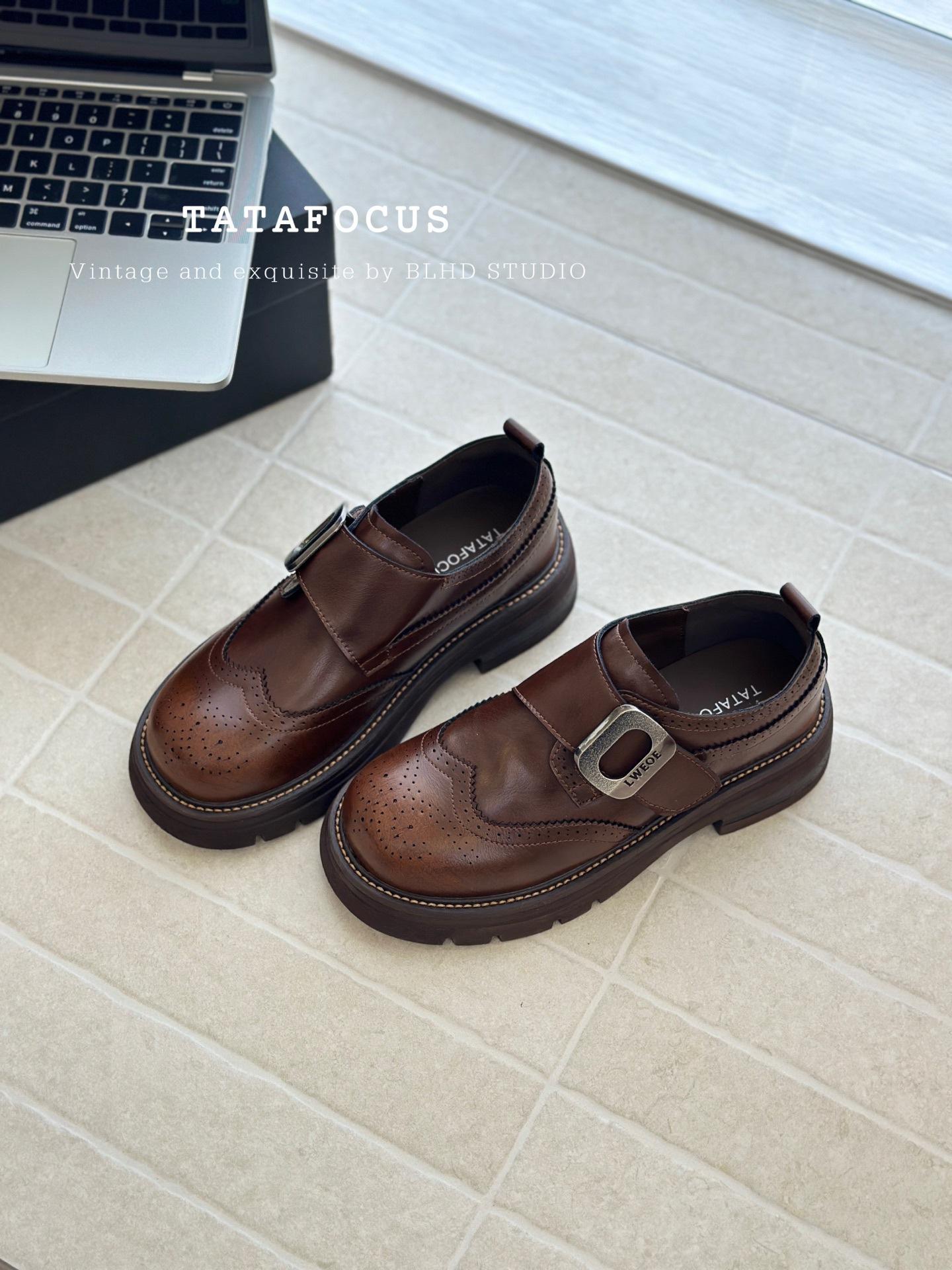 Кожаные туфли в британском стиле с резьбой из кожи Поллока, jk, на липучке, черные дерби, ретро, на платформе, лоферы, маленькие кожаные туфли, женские 39 коричневый