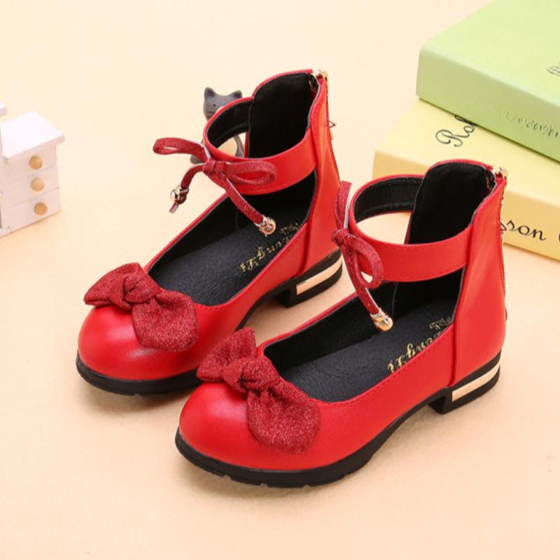 Кожаные туфли для девочек, весна и осень, черные, корейская версия, туфли принцессы на мягкой подошве, детские и подростковые одинарные туфли среднего размера 29 красный