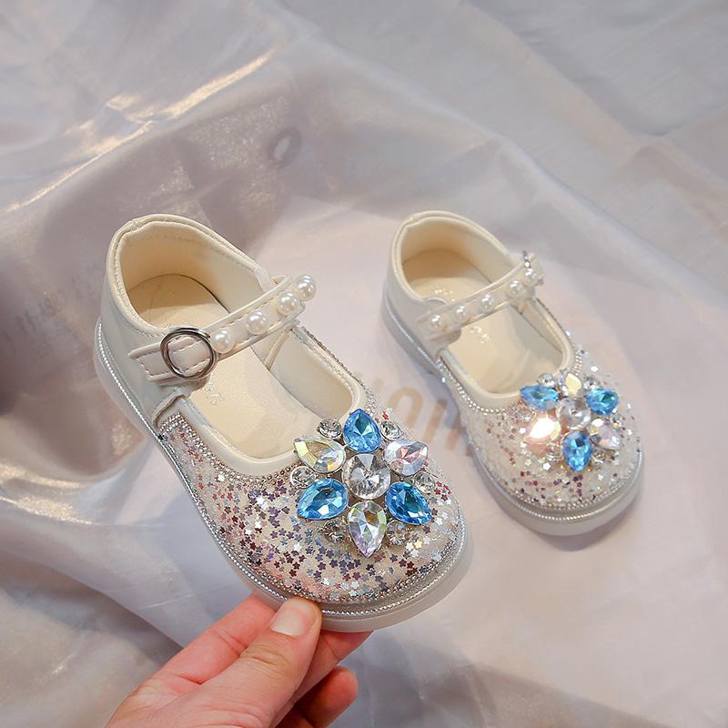 Кожаные туфли для маленьких девочек, весна-осень, роскошные детские туфли со стразами, модные детские туфли на плоской подошве с блестками, повседневные балетки для принцесс 25 синий