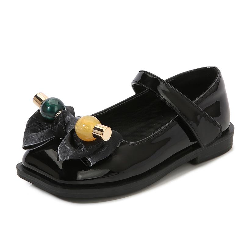 Кожаные туфли, осенние туфли принцессы на плоской подошве с бантом для девочек 35 чёрный