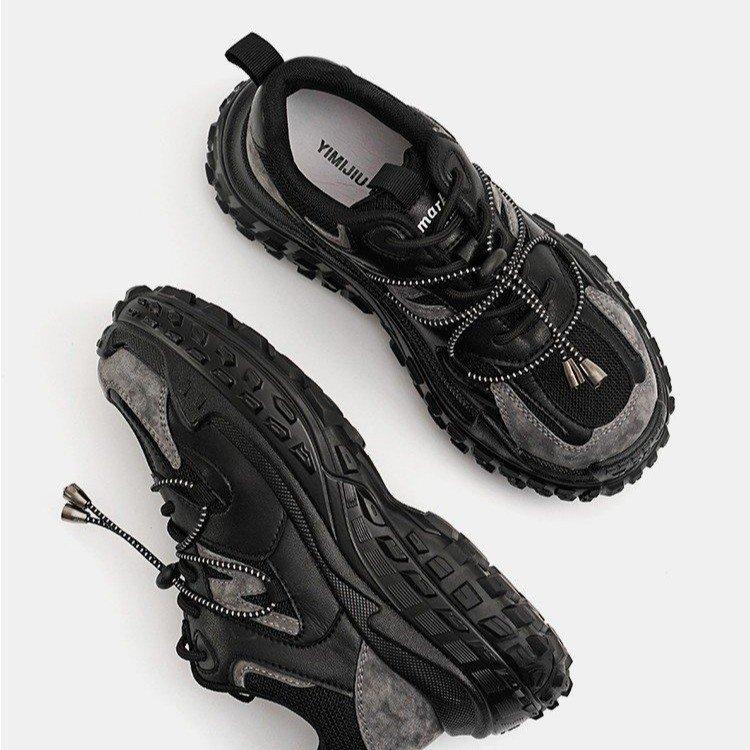 Кожаные черные туфли для пап на толстой подошве, женская весенняя новая спортивная повседневная обувь