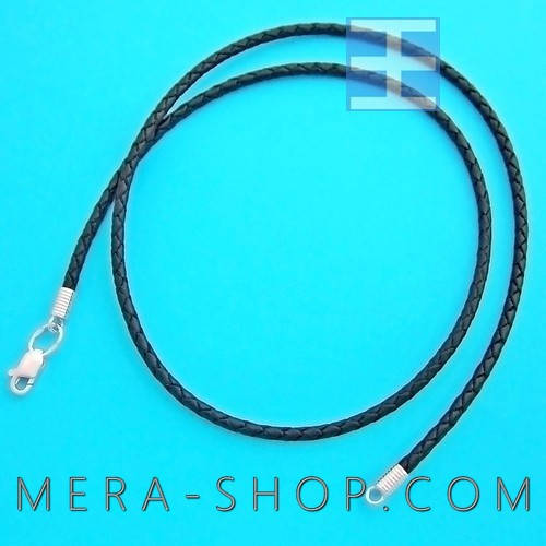Кожаный плетёный шнурок с серебряным замком (⌀2.5 мм, черный, любая длина)