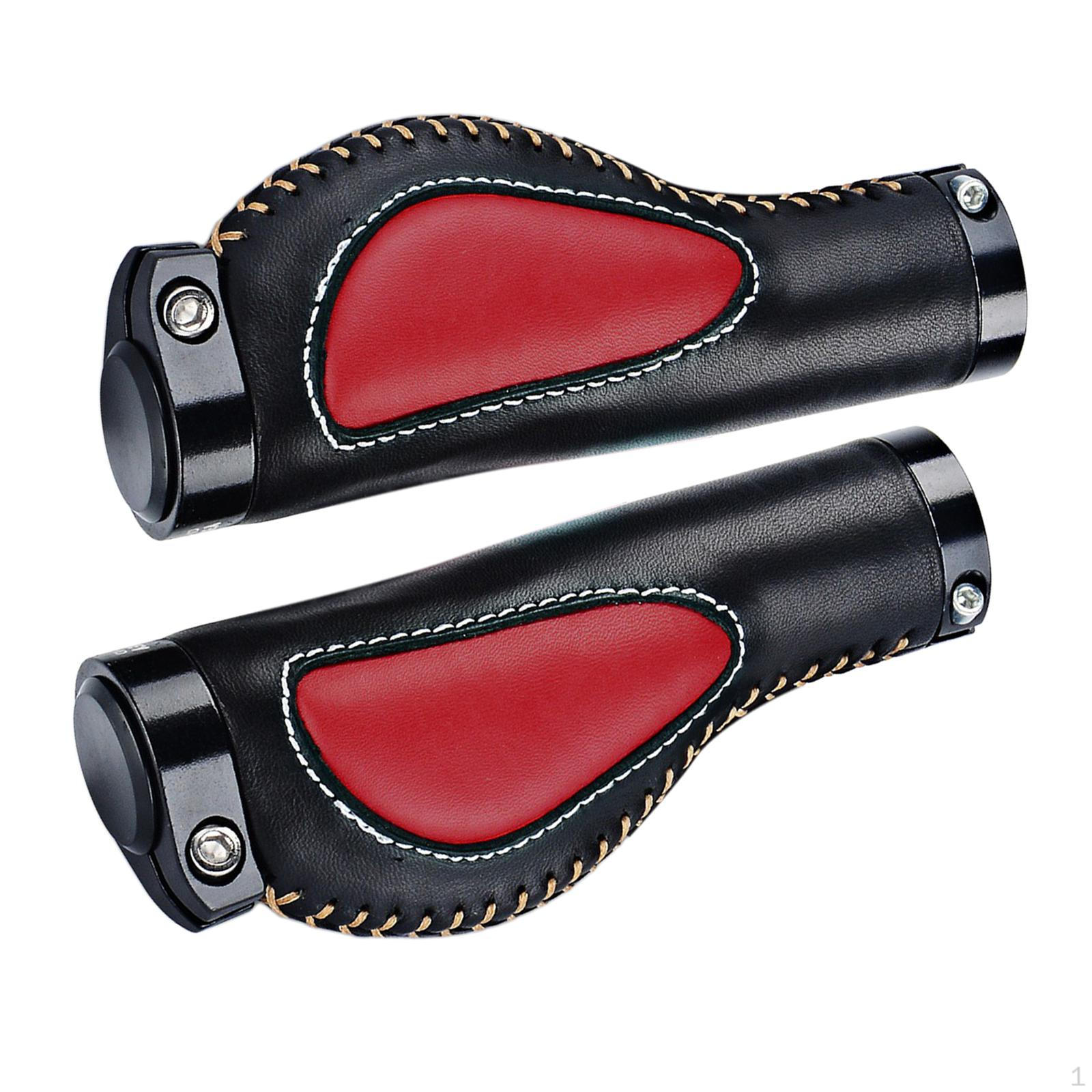 Кожаный руль велосипеда, ударопрочность, эргономика, комфортный дизайн, 1 пара ручек велосипеда, концы красный