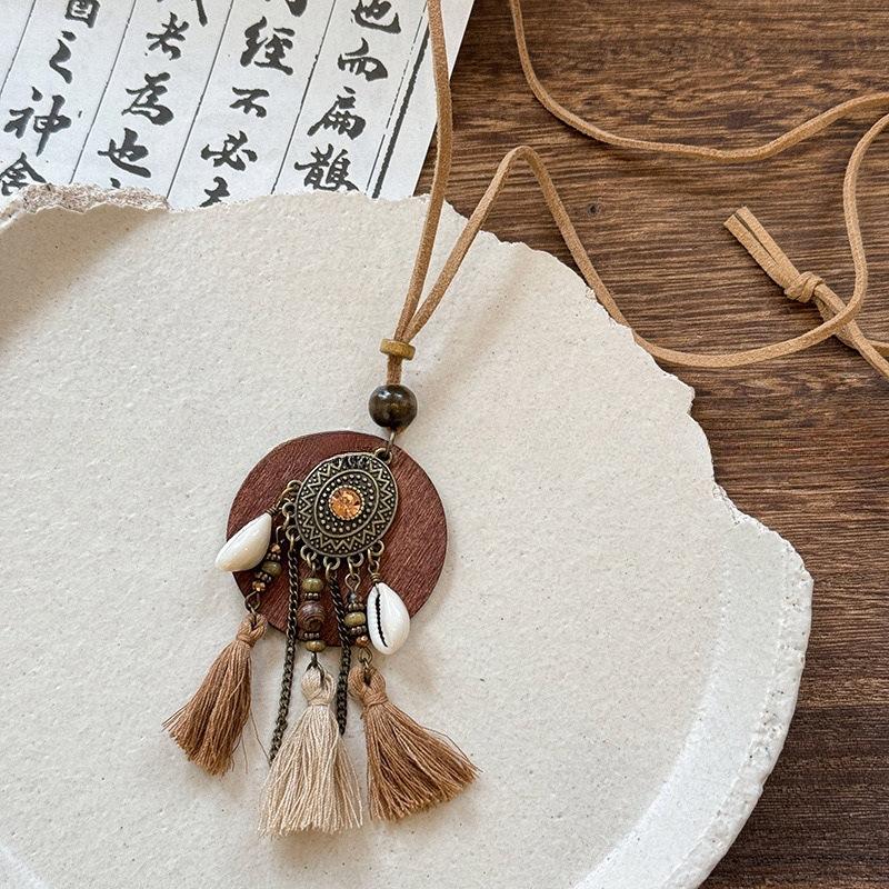 Кожаный шнурок, деревянная бусина, кулон, ожерелье, нишевый, ретро, темперамент, цепочка для ключицы, легкая роскошь, этнический стиль, универсальные украшения, женские