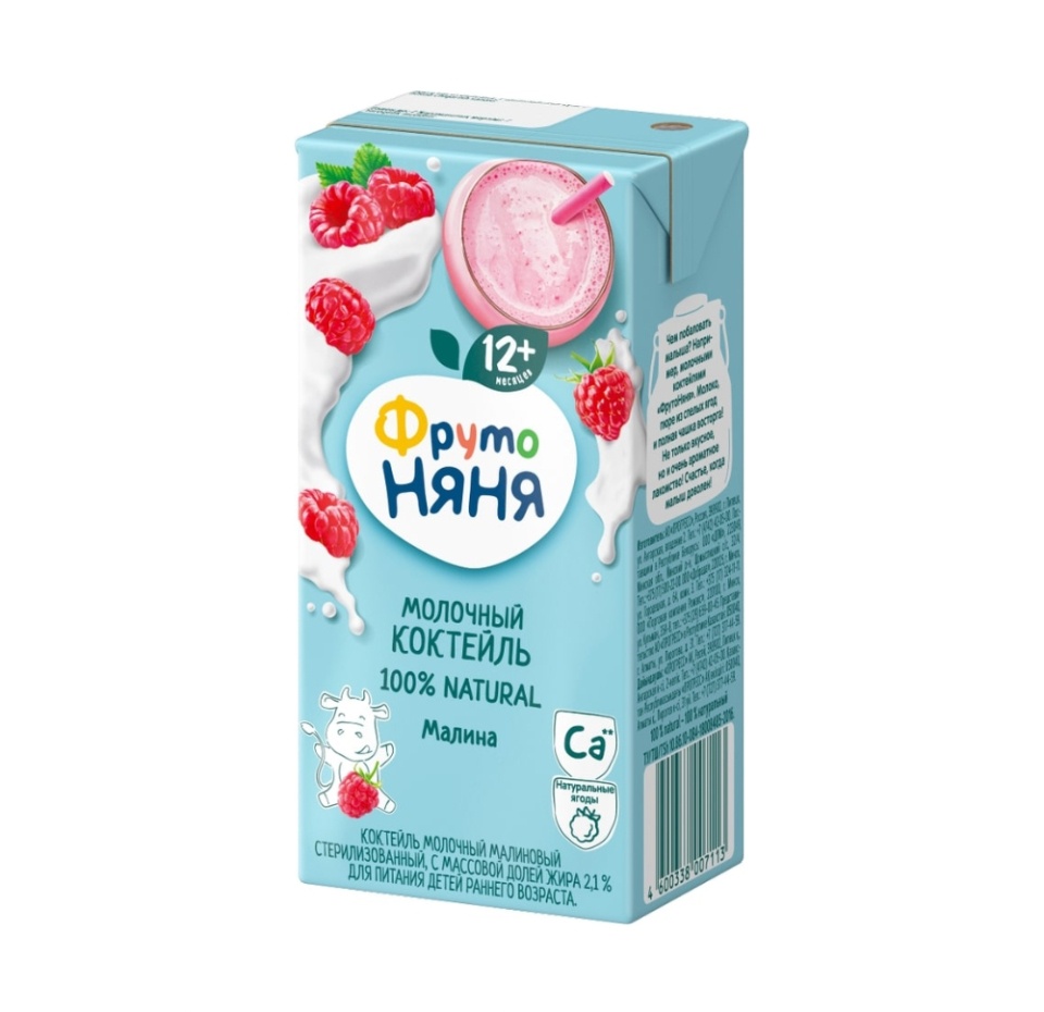 Коктейль молочный ФрутоНяня Малина 2.1% для питания детей 12+ месяцев 200 мл