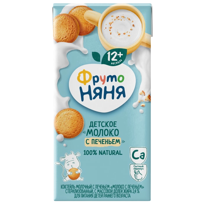 Коктейль молочный ФрутоНяня Молоко с печеньем с 12 месяцев 2.4% 200 мл