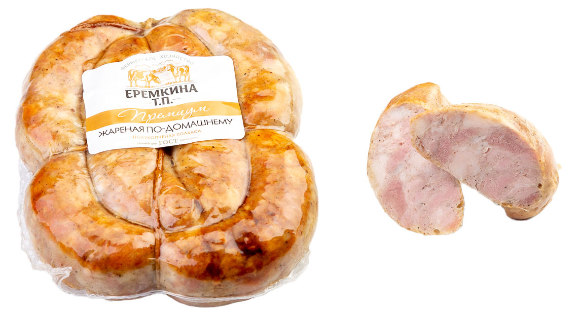 Колбаса полукопченая КФХ Еремино поле Жареная по-домашнему ГОСТ, ~ 1 кг