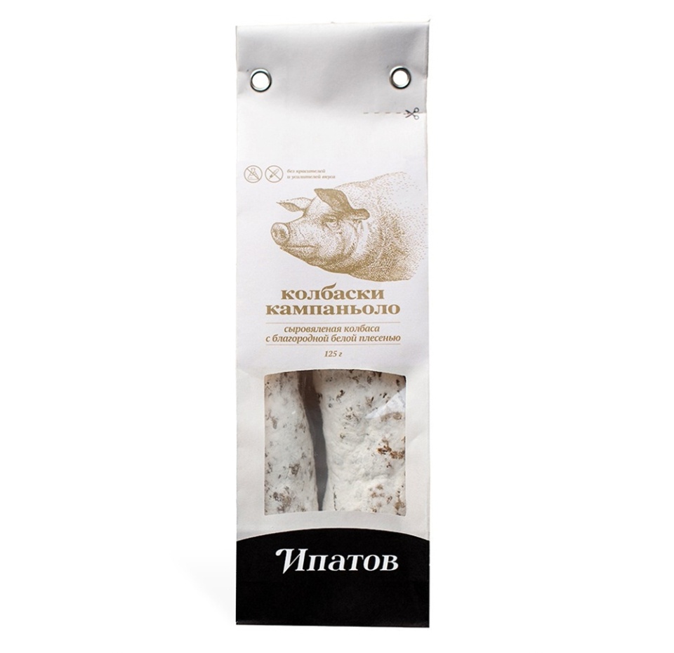 Колбаса сыровяленая полусухая Ипатов Колбаски Кампаньоло с благородной белой плесенью 125 г