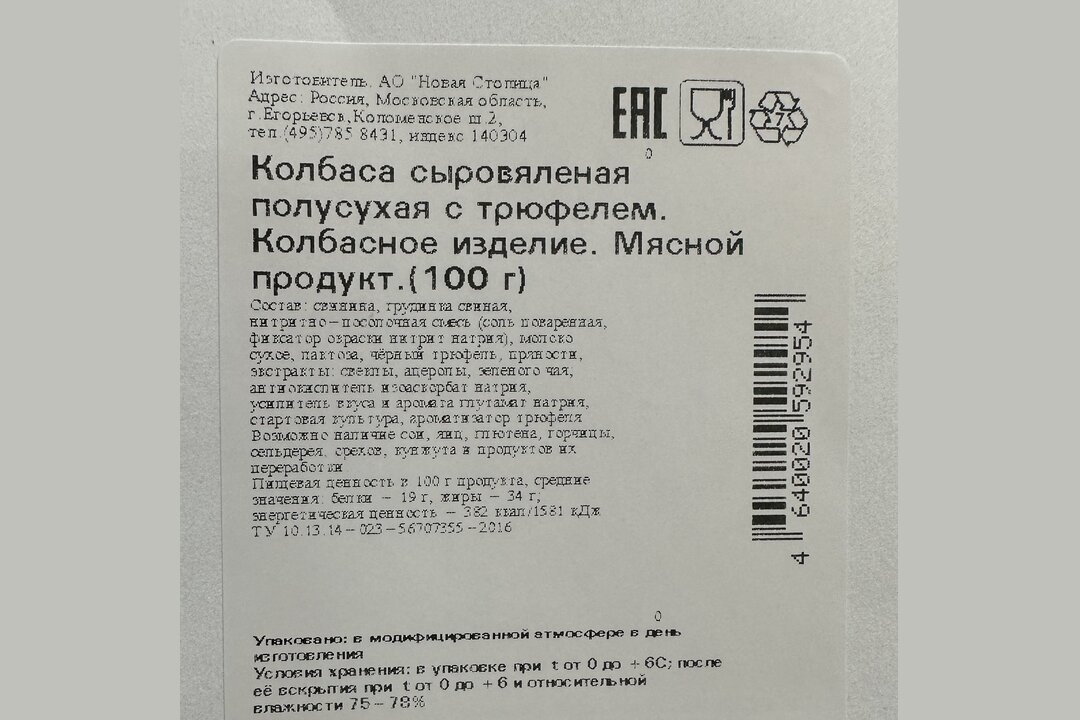 Колбаса сыровяленая с трюфелем полусухая Егорьевская КГФ, 100 г