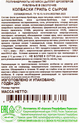 Колбаски Важная Цыпа из мяса цыплят бройлеров гриль с сыром, 450г