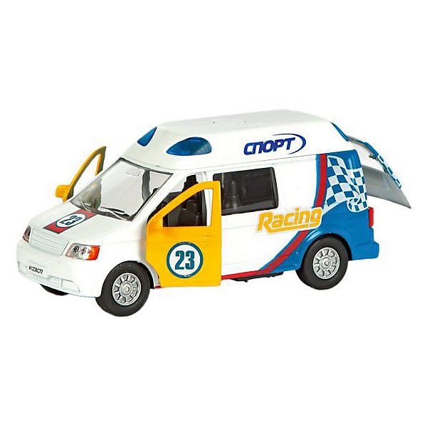 Машина «Ралли Спорт» Пламенный мотор — машинка из серии «По дорогам России». Она оснащена инерционным механизмом. У машинки открываются двери. Во время движения горят фары и раздаются звуковые сигналы, похожие на звук работающего мотора. Выполнена машинка из ударопрочного металла.